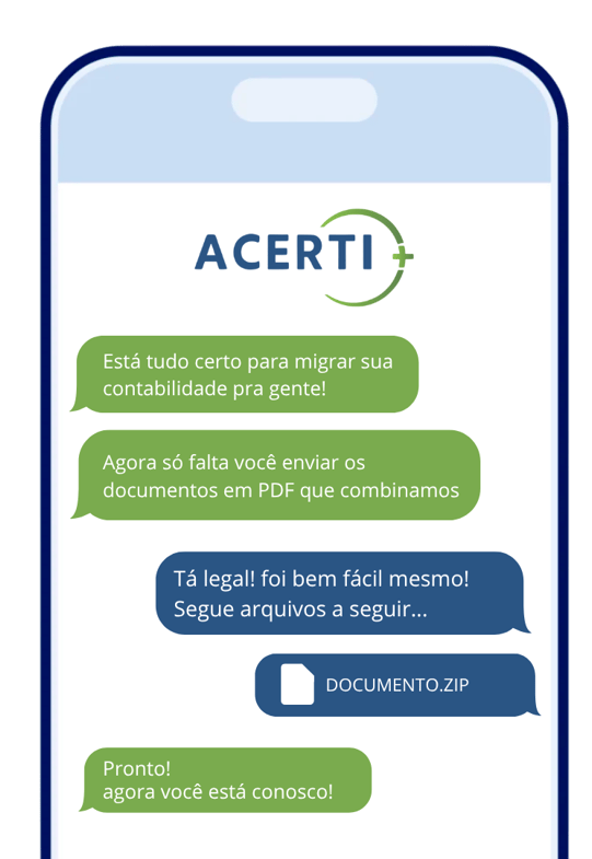 Estamos indo contra a tendência de outras contabilidades que estão deixando cada vez mais o atendimento e suporte robotizado. Aqui você recebe auxílio via WhatsApp de um especialista que olha para suas necessidades e desafios de forma humanizada e individual.